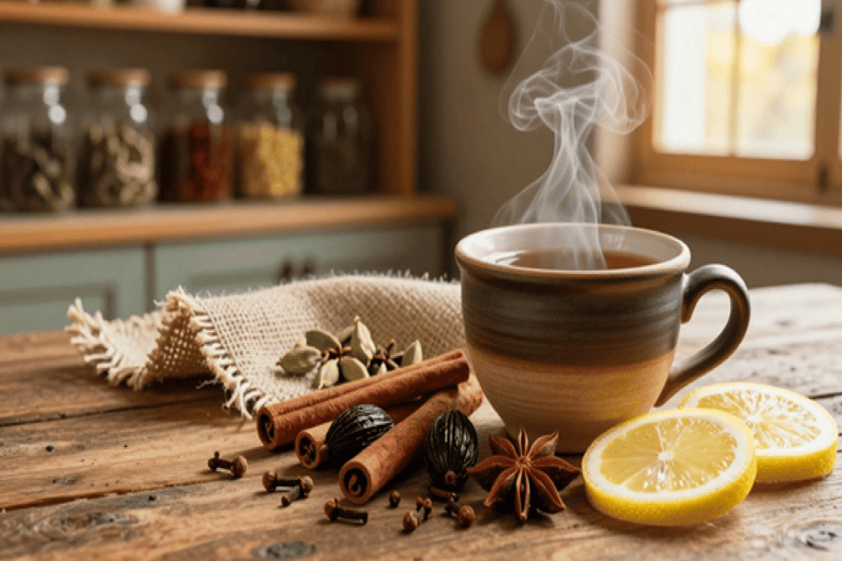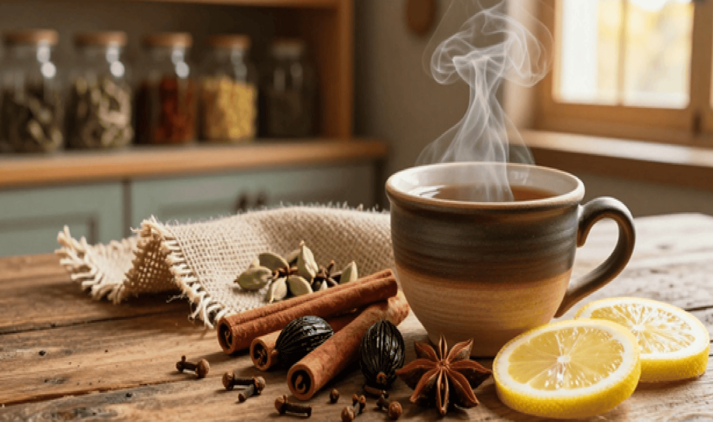 Cold and cough are among the most common seasonal illnesses, especially in cold Weather and also in changing Weather.. While medicines provide quick relief but also come with some reactions, natural remedies have been trusted for centuries for their gentle yet effective healing properties. One such powerful remedy is herbal tea made from clove, cinnamon stick, black cardamom, green cardamom, lemon, black pepper, and honey. This herbal tea not only soothes the throat but also strengthens the immune system and helps the body recover naturally.